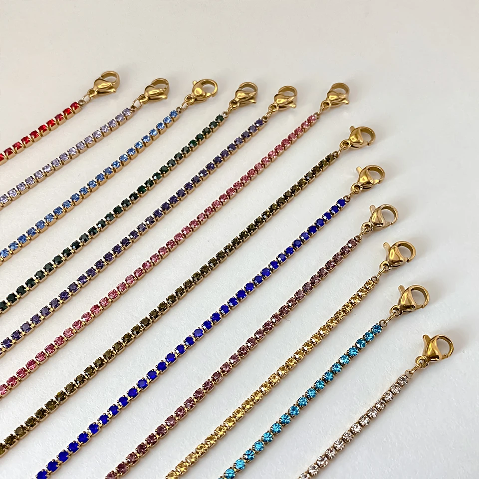 Gefertigt aus hochwertigem 316L Edelstahl oder 18K-vergoldetem Edelstahl, ist die Kette wasserfest, hypoallergen und farbbeständig – perfekt für den täglichen Gebrauch und jedes Outfit. Die fein gefassten Kristalle erinnern an das luxuriöse Design eines Tennisarmbandes – elegant, modern und symbolisch zugleich.